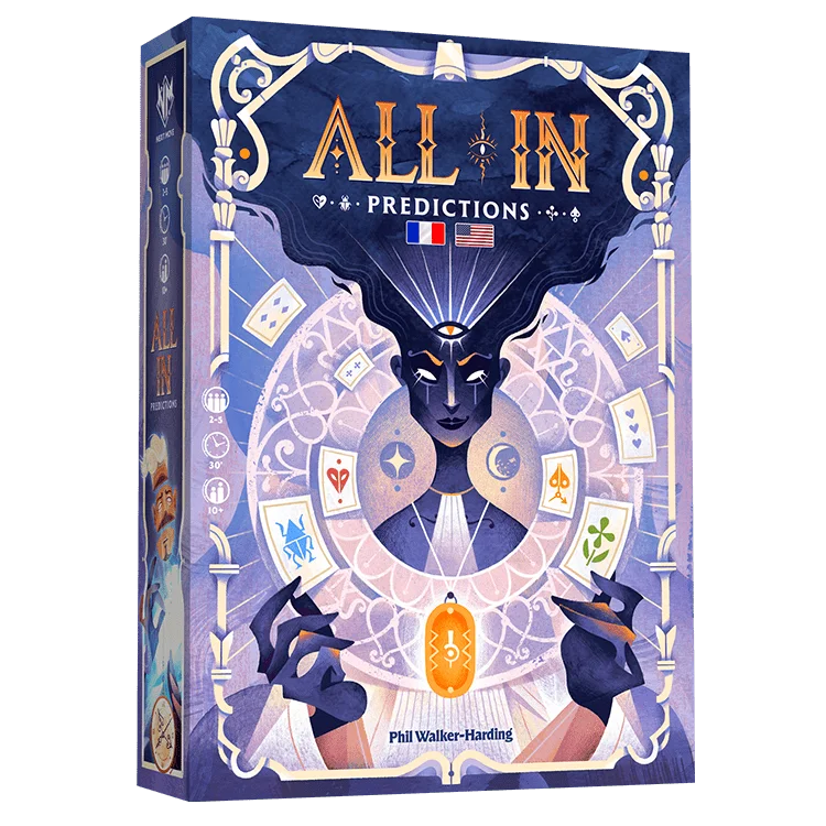Dans ALL IN – Predictions, les joueurs deviennent des devins doués qui s’affrontent pour façonner le destin lui-même. Combinez gestion de main et prévoyance stratégique dans ce jeu rapide inspiré du poker classique où une seule prédiction se réalisera. Jouez vos cartes, manipulez les probabilités et devinez qui détient la main la plus forte pour remporter le pot. Verrez-vous l’avenir… ou penserez-vous seulement le voir?