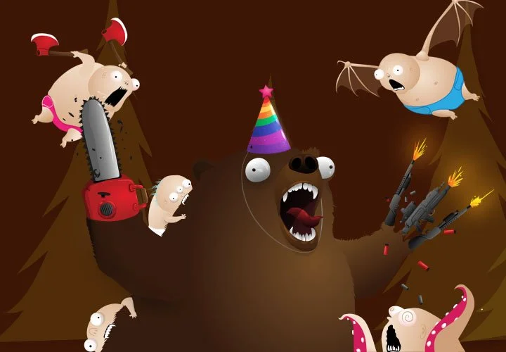 Bears vs Babies is a card game where you build incredible monsters who go to war with horrible, awful babies. Stitch together a Handsome Salmon armed with knives and burritos, or a Pomeranian of Light and Wonder in business attire who is being piloted by a robot-squirrel. Give your creations limbs, weapons, and special hats to help prepare them for the inevitable infant onslaught. In this hilarious game of strategic, benevolent betrayal, you win by eating more babies than anyone else.