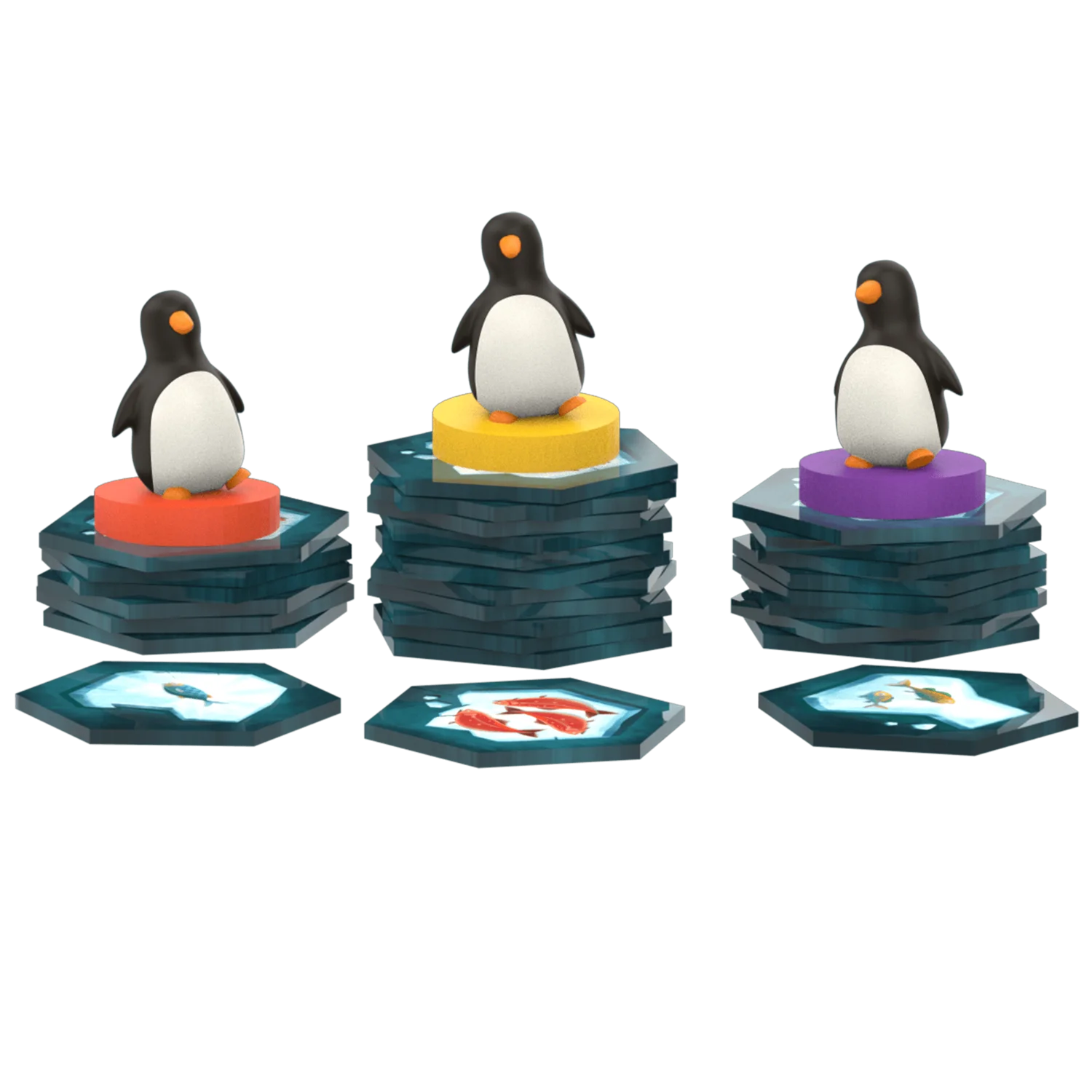 Your penguins must race across the rapidly dwindling ice floe to collect the juiciest fish and block off their rivals. But your penguins better stay alert! If a penguin gets stuck on an ice floe, he’s done.