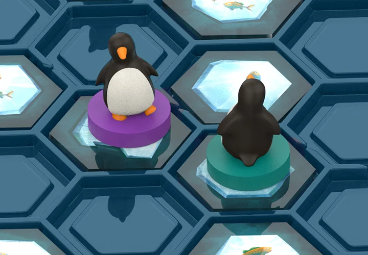 Your penguins must race across the rapidly dwindling ice floe to collect the juiciest fish and block off their rivals. But your penguins better stay alert! If a penguin gets stuck on an ice floe, he’s done.