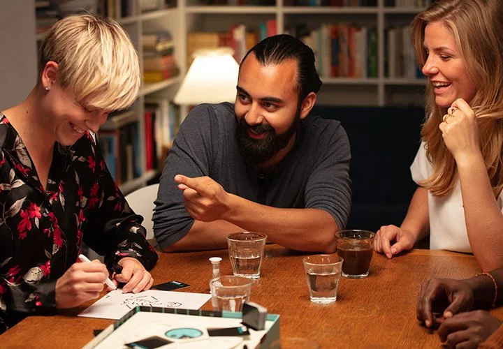 Choose your challenge from the card wheel – if you ignore a challenge, the wheel might make you take it next time. Think fast – you only have 90 seconds to hint at the five different objects. And beware of wild guesses – there’s always one forbidden object your team mustn’t guess.