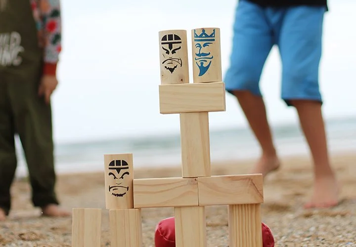 Build a grand castle, place the King and his cronies in or on it and start your attack! You score points good throws but only if you knock down the king himself. The player with the highest score wins! This wooden garden game makes for a good battle in skill and tactics!