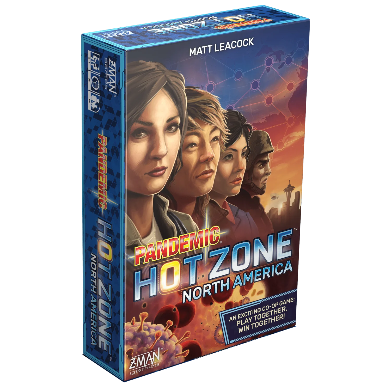From designer Matt Leacock, Pandemic: Hot Zone – North America is a completely cooperative game in which players win or lose as a team