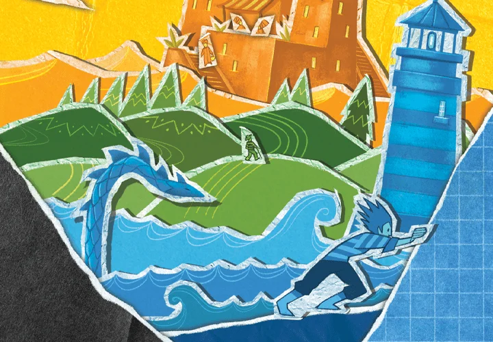 In Paper World, you’ll step into the role of a traveler recreating the stunning landscapes you’ve seen, using layers of colorful paper. On your turn, choose to either: