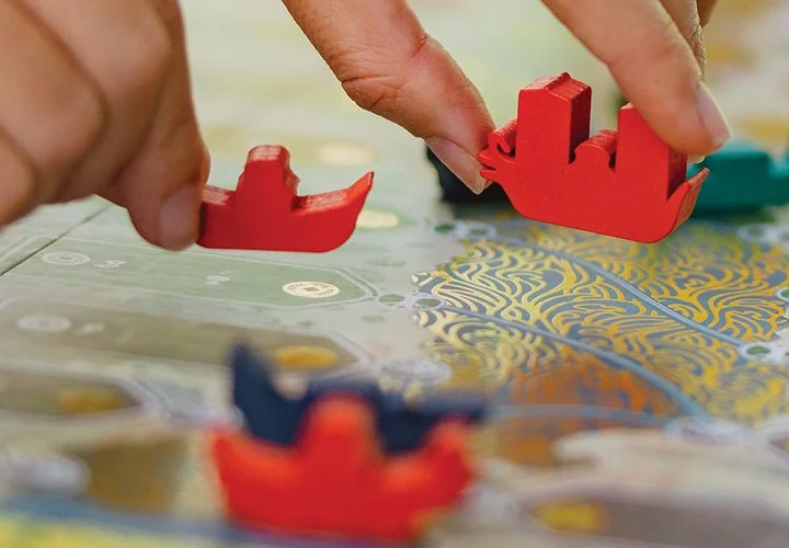 In River of Gold, players take on the role of river merchants allied with legendary samurai clans, each vying to exploit the river to earn wealth, glory, and wisdom. Will you invest in developing ports, markets, shrines, and more along the banks of the busy river? Or will you rely upon sailing the River of Gold, growing your wealth and influence through delivery contracts, visiting the nobility, and garnering a bit of divine favor during tough times?