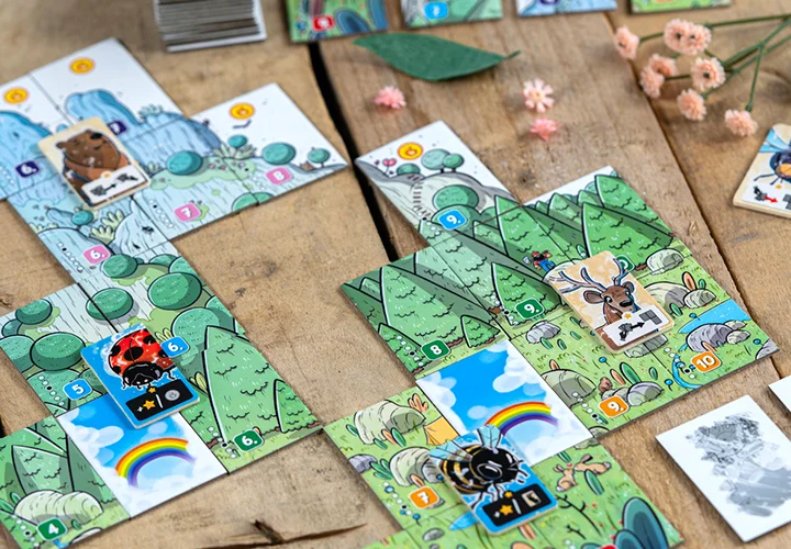 Travel the mountain and assemble as many landscape tiles as possible, meeting the forest spirits and light fires on the peaks creating a path through the valley.