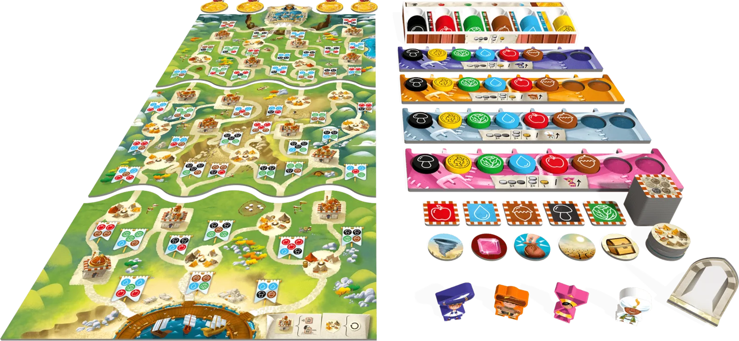 Be the first to complete your royal mission and become the most prestigious traveler! Use your resources to feed the inhabitants and travel across the realm of Splendor. Be the first to reach the city to win!