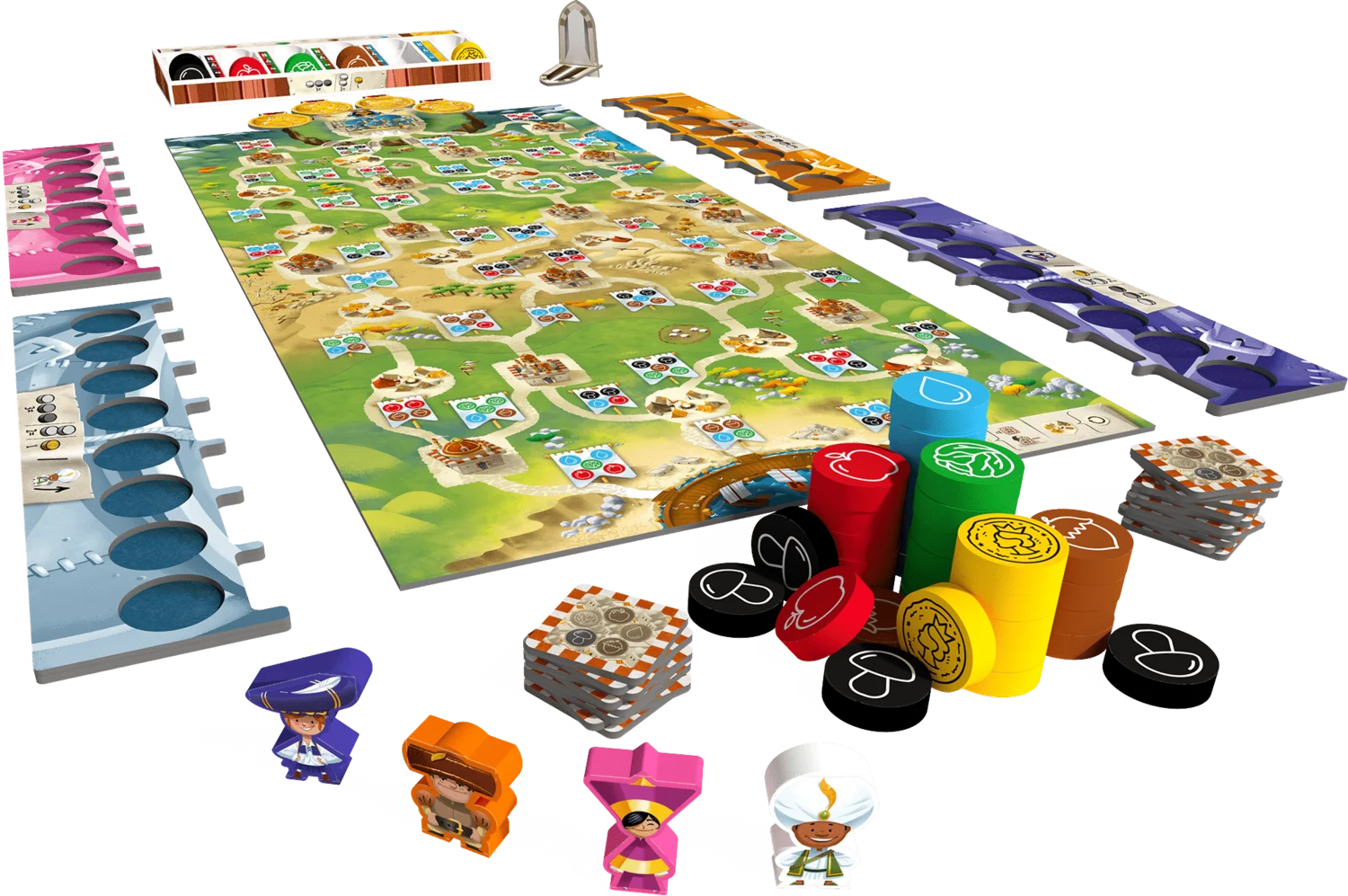 Collect resource tokens or use them to deliver food to the inhabitants of the realm.