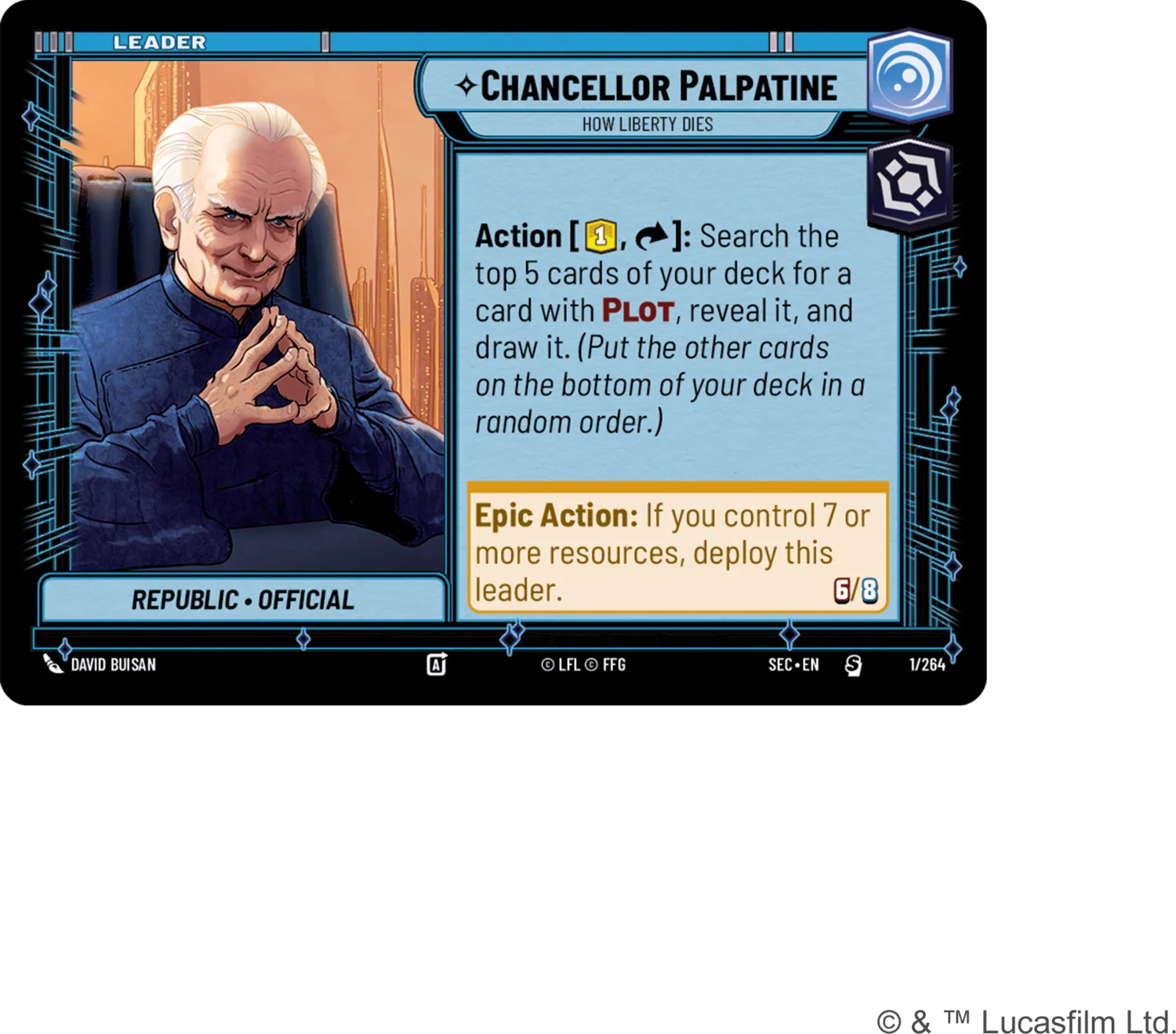 Scheme in the shadows and plot your ultimate victory with Chancellor Palpatine in this Spotlight Deck! This pre-built, ready-to-play 50-card deck provides everything you need to jump into the game’s sixth set.