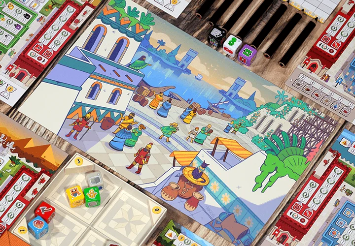 Construisez des Quartiers scientifiques, militaires ou économiques pour débloquer des effets puissants, optimiser vos ressources ou lancer des attaques ciblées. Chaque cité possède un plateau unique, pour une forte rejouabilité. Mêlant intelligemment hasard contrôlé et choix tactiques à un rythme rapide, le jeu propose une tension permanente en interaction avec vos voisins directs.
