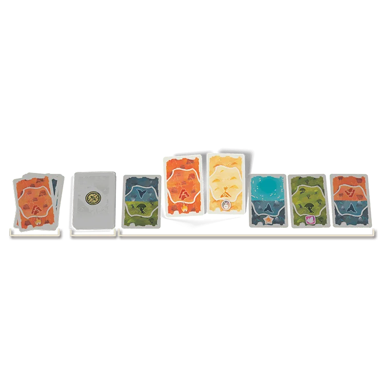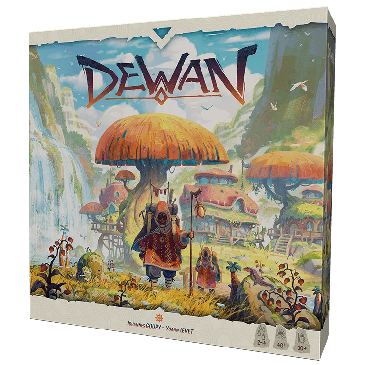 Dewan est un jeu de placement rapide et compétitif pour 2 à 4 joueurs qui combine course, placement et stratégie. Pendant la partie, vous collectez des cartes Terrain et les utilisez pour placer stratégiquement vos camps sur le territoire. Utilisez au mieux le terrain et les ressources afin de satisfaire les exigences de vos tuiles Histoire. En cours de route, ramassez des baies et maîtrisez le feu pour gagner des points supplémentaires.