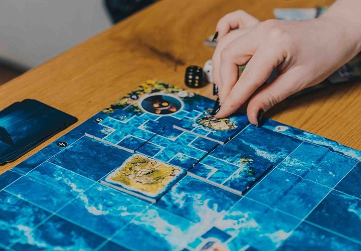 Au bout d’une minute, le joueur dont c’est le tour prend les 2 dés Vagues Géantes et les lance. Il devra retirer toutes les tuiles non protégées par un jeton oiseau de la ligne et de la colonne indiquées par les dés. Puis vous relancez le chronomètre et reprenez le tour de jeu.