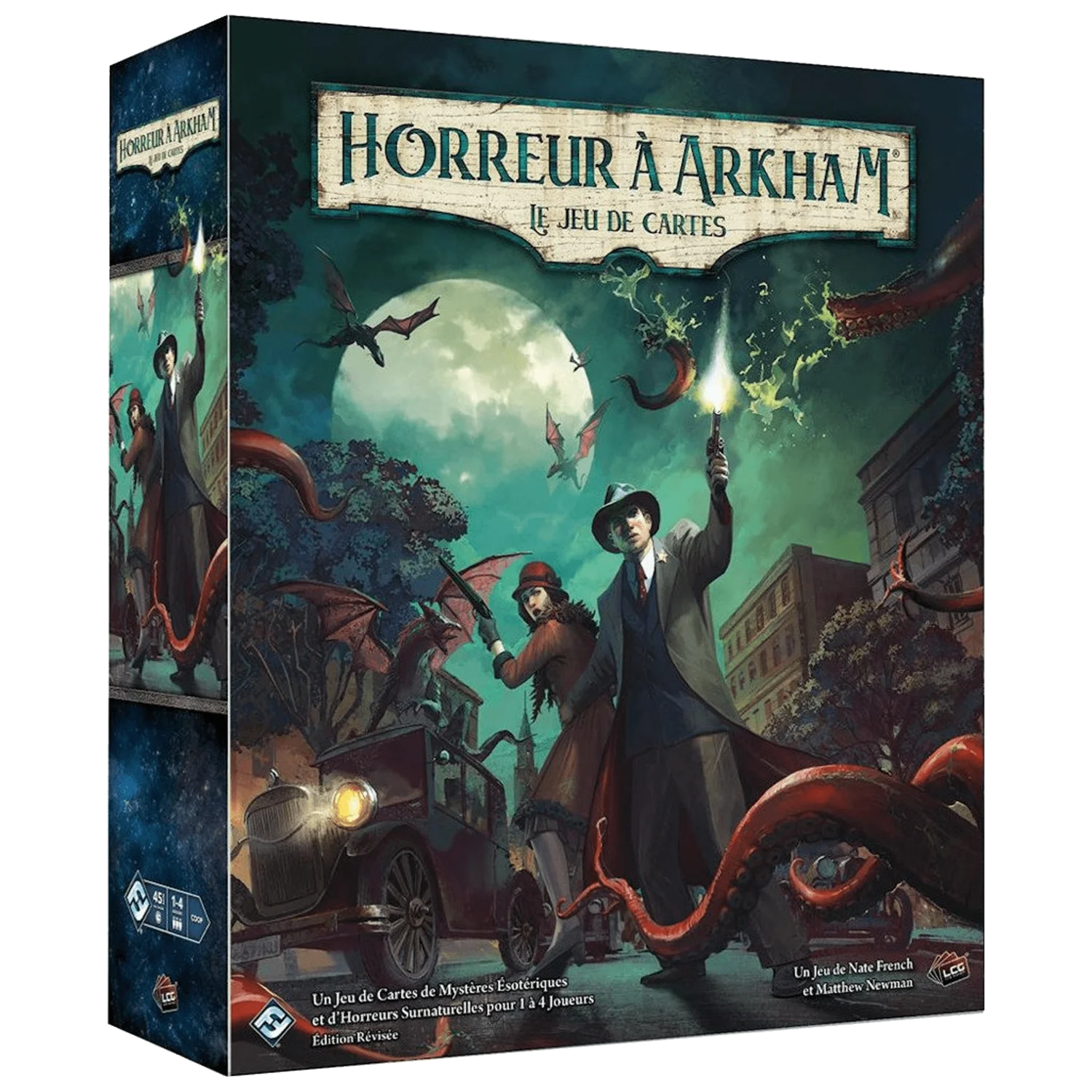 Horreur à Arkham est un jeu de cartes évolutif et coopératif dans lequel les joueurs incarnent des investigateurs qui œuvrent ensemble pour élucider des conspirations et des mystères ésotériques, tout en cherchant individuellement à vaincre les démons personnels qui hantent leur passé. Chaque joueur endosse le rôle d’un unique investigateur et bâtit un deck autour des capacités de ce personnage. L’intrigue se passe dans la ville d’Arkham, dans le Massachusetts. Un petit groupe d’investigateurs mène l’enquête afin de découvrir la véritable nature d’une terrible menace qui met en péril toute l’humanité. Le royaume des arcanes recèle bien des horreurs. Les investigateurs devront suivre leur enquête tout en veillant à maintenir une emprise ténue sur leur santé mentale pour survivre.