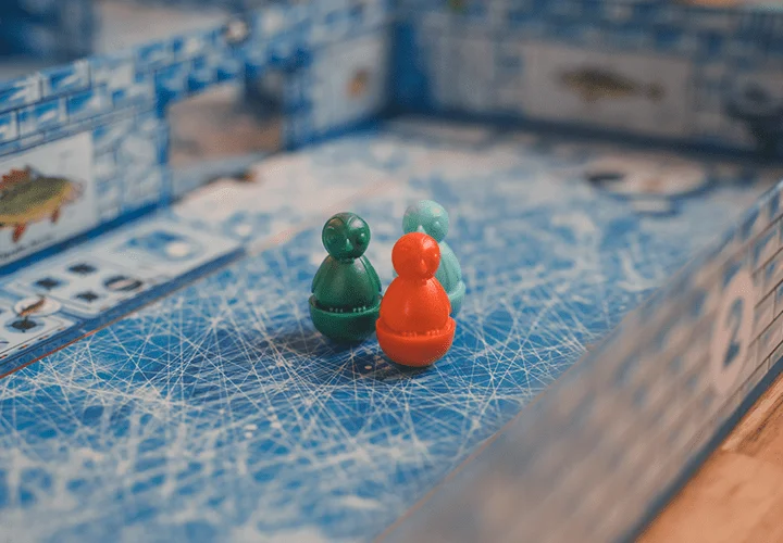 La course amusante commence – les coquins courent partout et tentent d'attraper les poissons en chemin, mais le Moniteur de Hall essaie d'attraper chacun d'eux pour mettre de l'ordre dans la cantine. Qui aura le plus de succès ? Le premier jeu de pichenettes 3D à avoir des pièces qui glissent, tournent, plongent et sautent est facile à mettre en place et crée des moments amusants pour les familles et les fêtes. Les innombrables façons dont les personnages bougent et interagissent garantissent un jeu avec des possibilités et des surprises infinies. Le plateau de jeu unique utilisant un emballage boîte dans une boîte est très rapide et facile à installer.