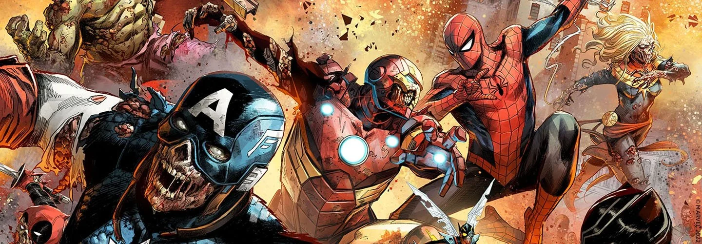 Marvel Zombies - Un Jeu Zombicide place les joueurs dans les corps en décomposition de ces héros contaminés. Contrairement aux précédentes éditions de Zombicide, ils n'essaient pas d'arrêter les zombies, mais de répandre le fléau le plus loin possible.