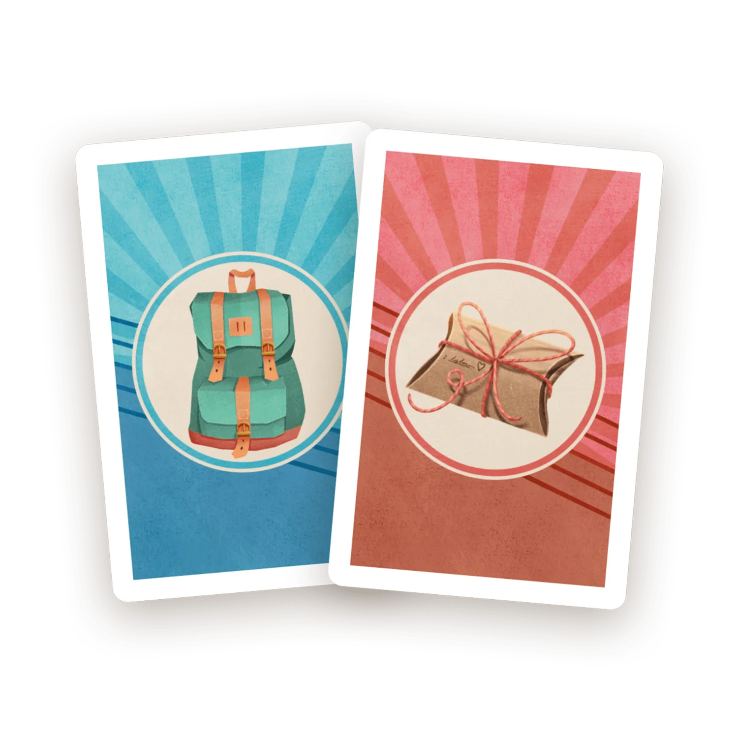 Pendant la partie, les joueurs utiliseront des cartes Voyage pour explorer de nouveaux lieux, établir des campements et collectionner des cartes postales afin de compléter leur itinéraire de voyage.