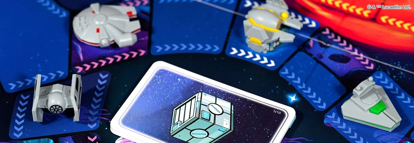 - Une double case donne le choix : le personnage peut s'arrêter sur l'un des deux sites. Il peut s'agir d'une case normale, de l'hyperespace, d'un champ d'astéroïdes ou d'un trou noir Mau.