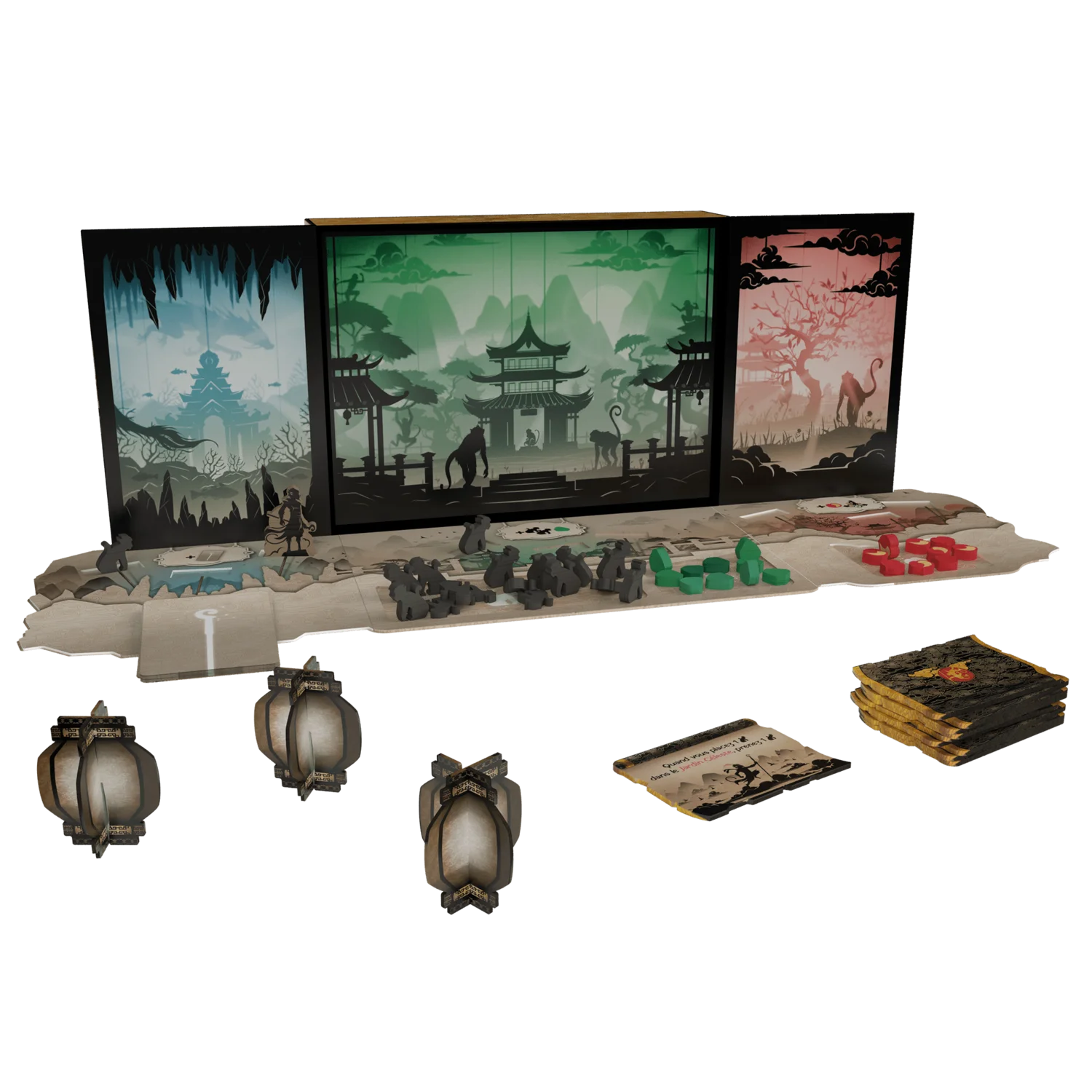 Placez vos singes, récoltez les pêches d’immortalité, accumulez des jades et forgez votre légende. Employez les armes du dragon pour surprendre votre adversaire, et usez de tactique, d’opportunisme et de ruse pour remporter la partie.