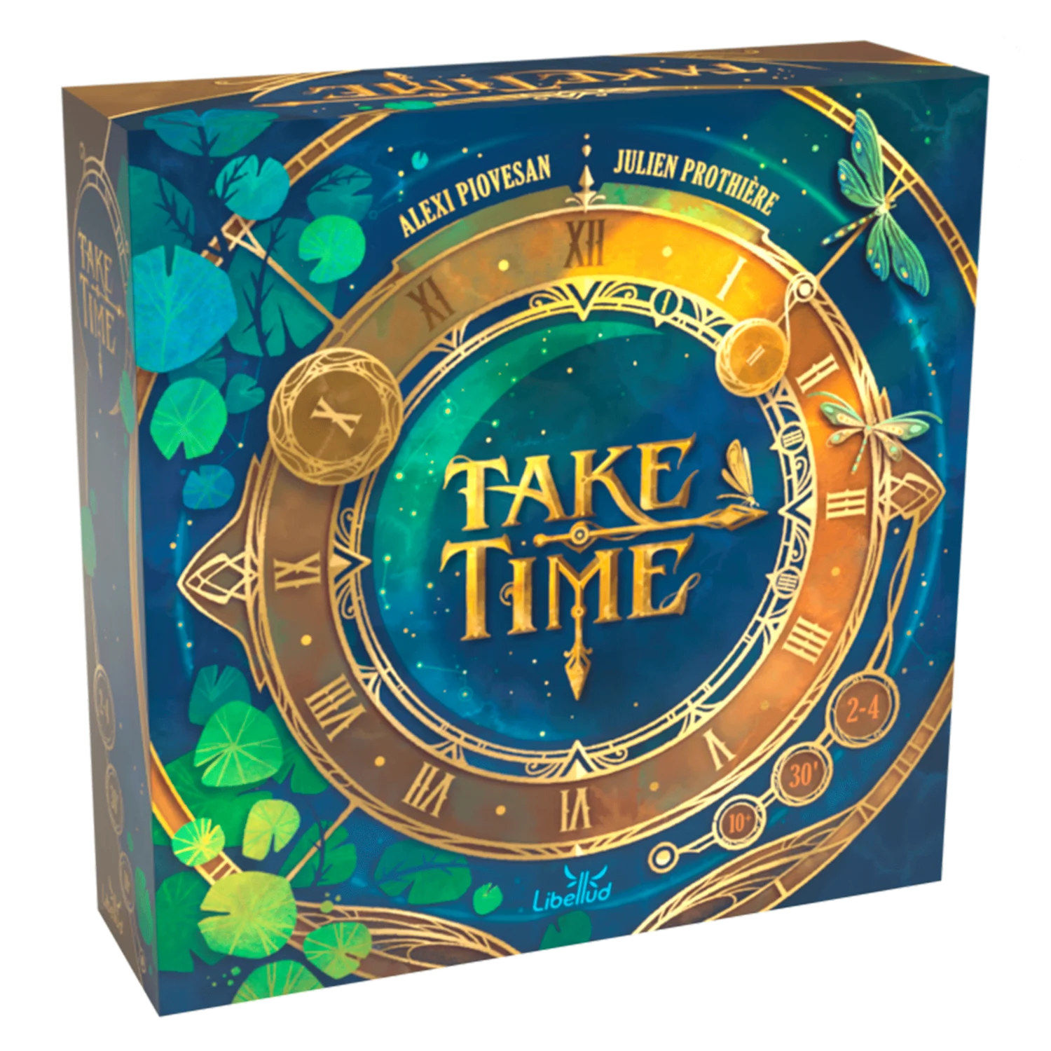 Take Time est un jeu coopératif de déduction à communication limitée dans lequel 2 à 4 joueurs collaborent pour résoudre des énigmes d'horloges mystérieuses en plaçant judicieusement les cartes autour d'un cadran.